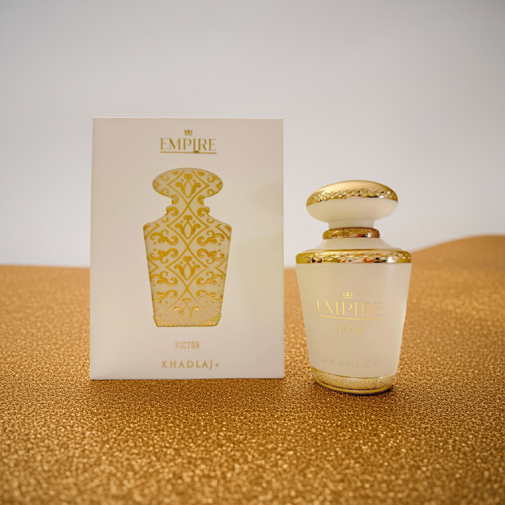 Empire Victor de Khadlaj Perfumes es una fragancia de la familia olfativa Floral Frutal Gourmand para Hombres y Mujeres. Esta fragrancia es nueva. Empire Victor se lanzó en 2024. Las Notas de Salida son limón (lima ácida) y bergamota; las Notas de Corazón son caramelo y jazmín; las Notas de Fondo son vainilla y almizcle.